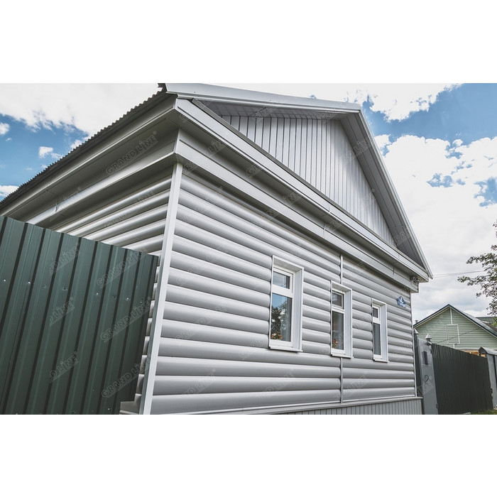 Металлический сайдинг Grand Line Блок-хаус 0.45 мм PE RAL 9006 бело-алюминиевый