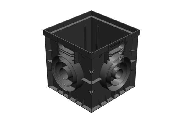 Дождеприемник представляет собой небольшую квадратную емкость, имеющую на всех боковых стенках патрубки для соединения с трубами водоотвода диаметром 50,110 и 160 мм.