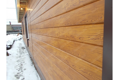 • В отличие от облицовки фасада деревом, металлический сайдинг «ЭкоБрус GL» прост в монтаже и не требует дополнительного послемонтажного ухода.