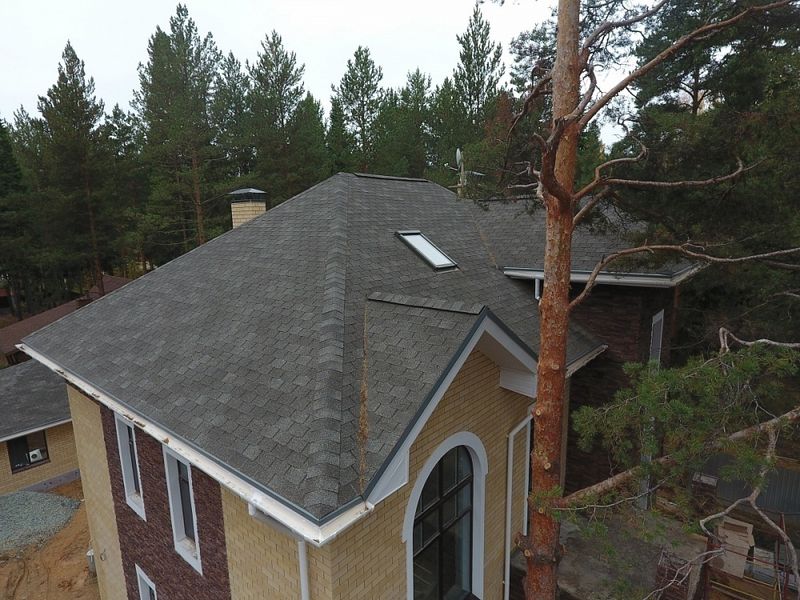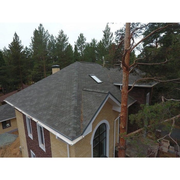 Глубокий графитовый цвет с мягкими переходами оттенков эффектно смотрится на кровлях большой площади сложной конфигурации. Дизайн гонтов не отвлекает внимание от деталей крыши. Черепица гармонично смотрится со светлыми теплыми оттенками и более насыщенными холодными тонами.