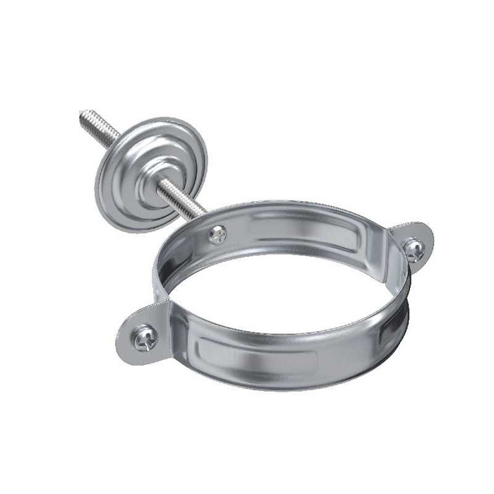 Хомут с комплектом крепления трубы предназначен для надежного крепления водосточного стояка на фасаде здания. Усиленный, с ребрами жесткости, что обеспечивает надежное крепление водосточной трубы. Имеет винтовое соединение, позволяющее использовать его многократно и упрощает установку. Подходит к любым типам фасадов (универсальный), что облегчает процесс заказа водосточной системы и не увеличивает номенклатуру. В комплект входит декоративная накладка, которая обеспечивает эстетику в месте крепления хомута, скрывает сколы отверстия и дюбель, а при использовании герметика защищает фасад от разрушения.