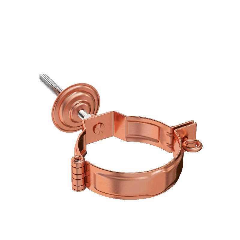 Данный элемент предназначен для монтажа водосточных систем, оснащён одним монтажным декоративным винтом, декоративной петлёй, метизом М10 и декоративной накладкой. Применяется для крепления водосточной трубы к фасаду здания. За счёт наличия одного винтового соединения процесс монтажа существенно упрощается, а наличие дизайнерской формовки увеличивает прочностные характеристики и существенно повышает эстетику всей системы.