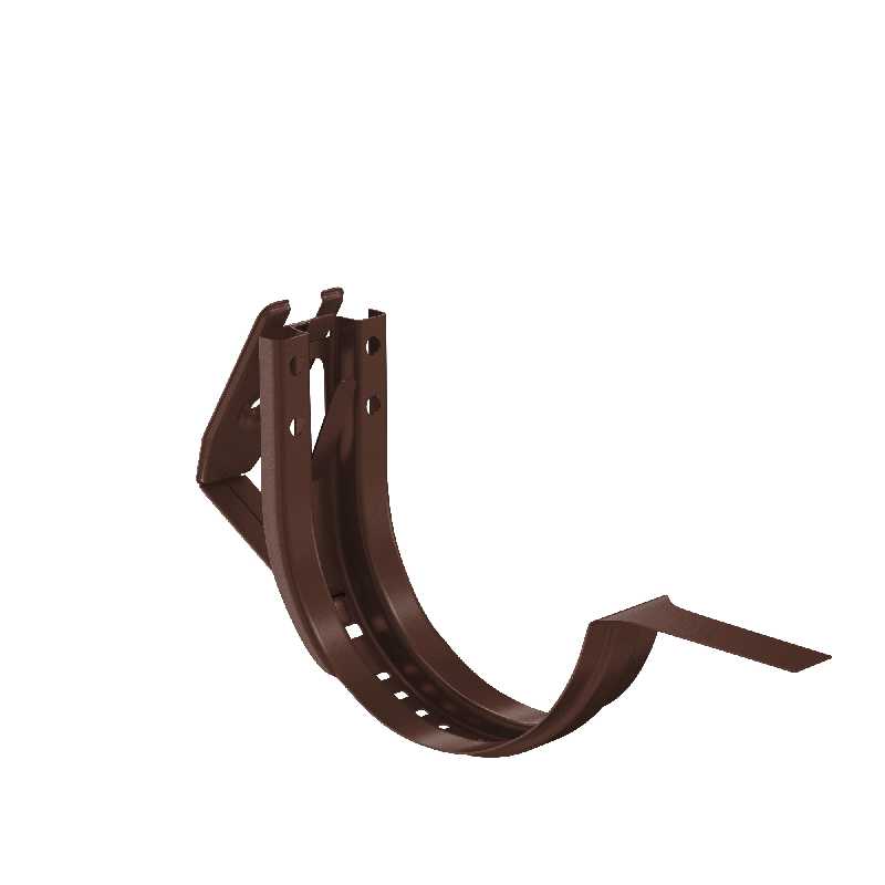 Крюк крепления регулируемый (в комплекте)Применяется для монтажа водосточных систем 125/90 и 150/100Данный элемент имеет возможность регулировки угла наклона и позволяет производить монтаж водосточного желоба на лобовую доску с уклонами отличными от 90 градусов.