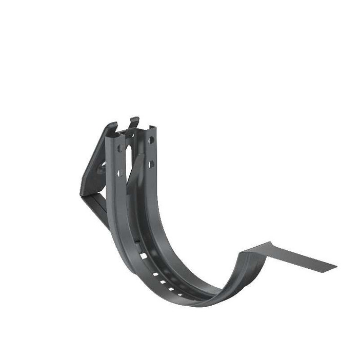 Крюк крепления регулируемый (в комплекте)Применяется для монтажа водосточных систем 125/90 и 150/100Данный элемент имеет возможность регулировки угла наклона и позволяет производить монтаж водосточного желоба на лобовую доску с уклонами отличными от 90 градусов.