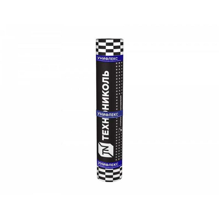 Унифлекс П — с полимерной пленкой с обеих сторон полотна; применяется для устройства нижних слоев в многослойной гидроизоляции строительных конструкций.