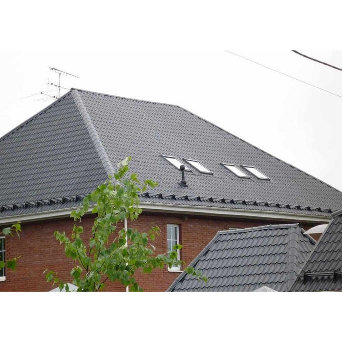 • Сталь 0.4 мм (с учётом металла, цинкового и защитно-декоративного покрытия) оберегает кровлю от механических повреждений.