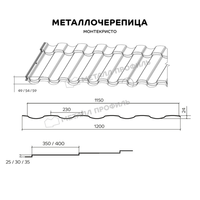 Компания Металл Профиль (КМП) предлагает МОНТЕКРИСТО ― новый элегантный профиль стальной черепицы. Его полная глубина ― 49, 54 или 59 мм. Словно подлинная фамильная ценность, он будет долго украшать ваш дом. Металлочерепица МОНТЕКРИСТО красиво выглядит на крыше любой площади: даже небольшие скатыстанут выразительными и заметными. Округлые линии профиля привлекают внимание к вашему дому. При производстве указанного кровельного материала используется технология 3D-реза. Благодаря качественной обработке на высокоточном оборудовании листы надёжно стыкуются при монтаже. Элегантный и изысканный ― это профиль МОНТЕКРИСТО!
