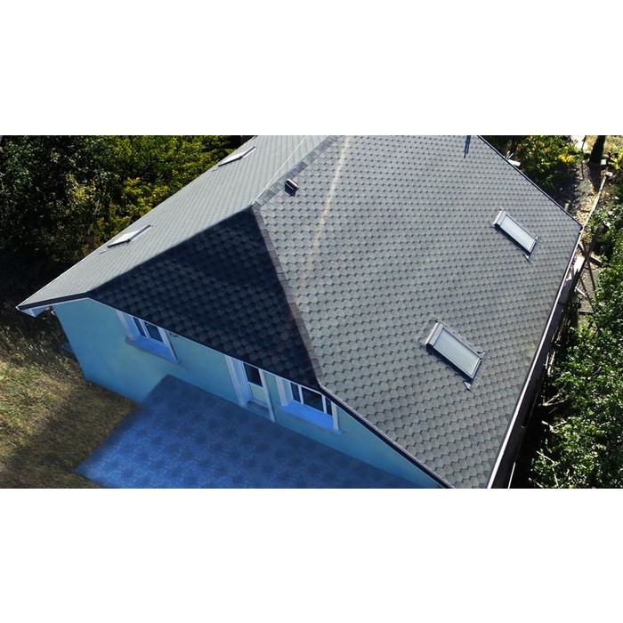 Битумный СБС-модифицированный материал на основе из стеклохолста с крупнозернистой посыпкой на верхней стороне, мелкозернистой посыпкой и полосой клеевого битума шириной 180 мм на нижней. Клеевая полоса защищена антиадгезионной полиэтиленовой пленкой, которая удаляется непосредственно перед монтажом.