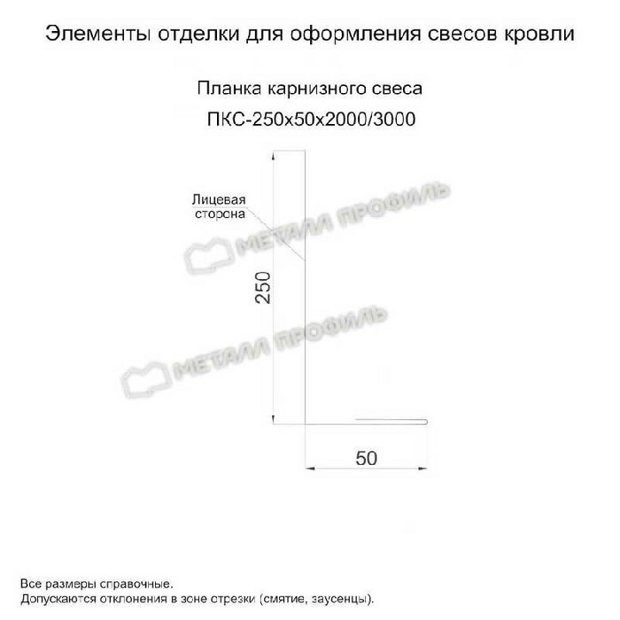 Планка карнизного свеса 250х50х3000 (ПЭ-01-6019-0.45)