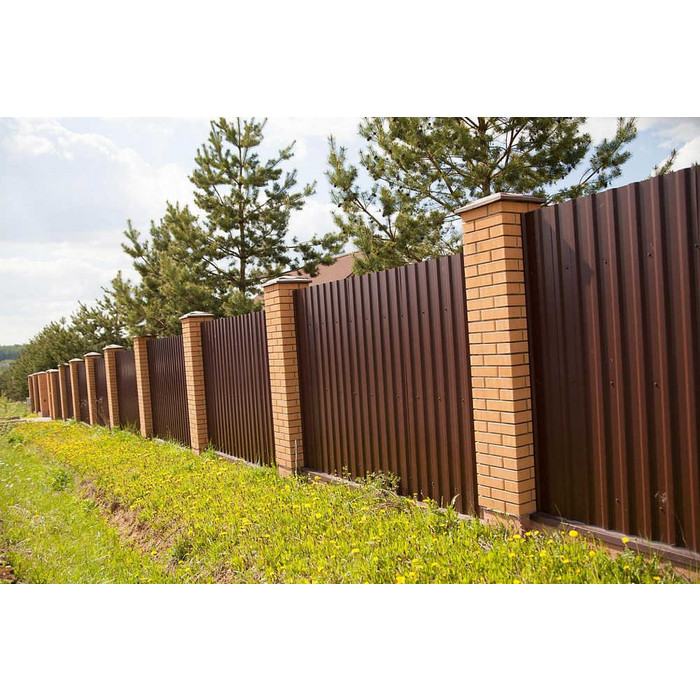 Профилированный лист МП-20x1100-B (VikingMP-01-8017-0,45) широко применяется в Высоцке для монтажа забора. Изначально он представляет собой стальной оцинкованный лист с покрытием. Общая толщина металла с оцинковкой и декоративно-защитным покрытием составляет 0.45 мм.После проката на специальном оборудовании сталь приобретает рисунок из ритмичных волн. Такая форма придает профилю несущую способность.