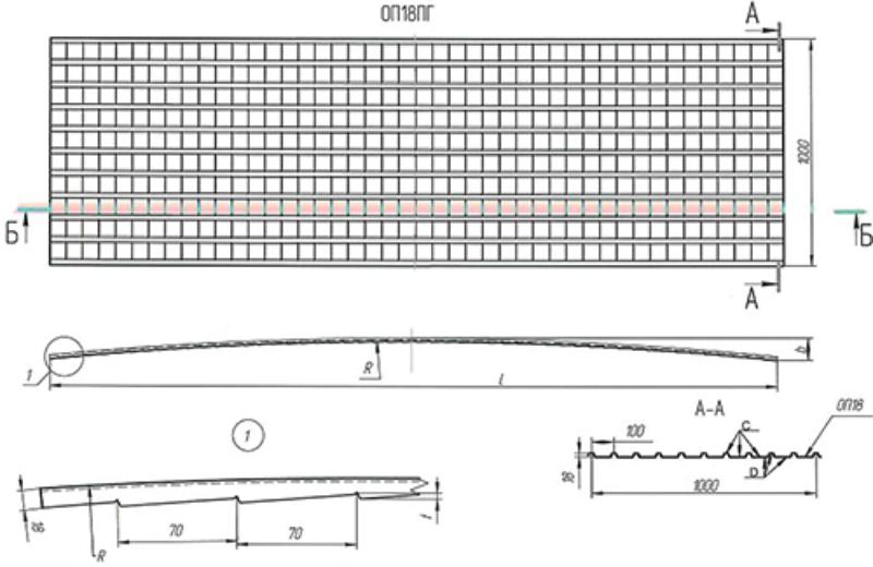 Гнутый профнастил С18ПГ представляет собой листовой металлический материал с продольной волной трапециевидной формы. Продольно-гнутый арочный профиль устойчив к механическим и весовым нагрузкам и вероятным механическим повреждениям. Основной материал изготовления — качественная оцинкованная сталь. Использовать его рационально там, где эстетичное оформление здания играет большую роль.