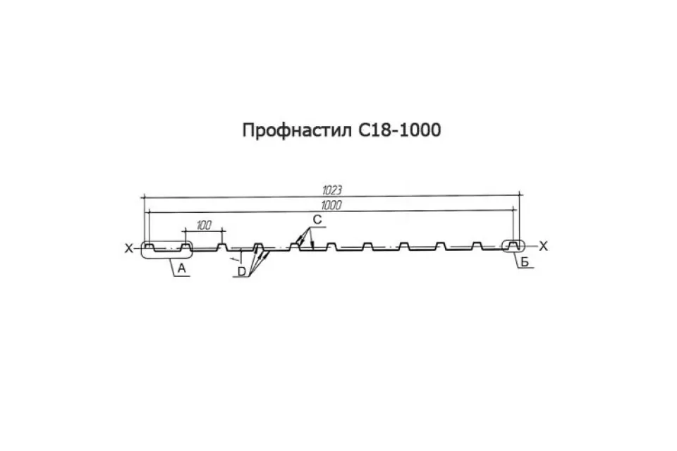 Профнастил С18 выпускается несимметричным волнистым или трапециевидным профилем, высота которого составляет 18 мм. Ширина листа прокатывается в трех размерах как 800мм, 900мм, 1000мм что дает возможность использовать лист без остатков. Данный тип имеет несколько дополнительных ребер жесткости для предания устойчивости и прочности. Герметичность конструкции достигается за счет дополнительных канавок с узкого края профиля. Подобная модификация и толщина металла от 0,4 до 0,9 мм  гармонично совмещает в себе прочностные параметры с эффектным обликом. Широкое применение профнастила достигается за счет удачного сочетания характеристик: кровельные покрытия, быстровозводимые здания, навесы, облицовка зданий и изготовление утепленных сэндвич-панелей. В качестве исходного сырья для изготовления С18 выступает оцинкованная тонколистовая сталь. Она прекрасно переносит даже тяжёлые климатические нагрузки: агрессивный ультрафиолет, ветер, тяжёлый снег. А защитное полимерное покрытие дополнительно предотвращает ржавение и прочие окислительные реакции.