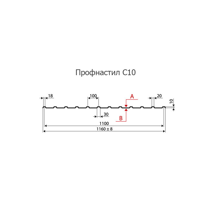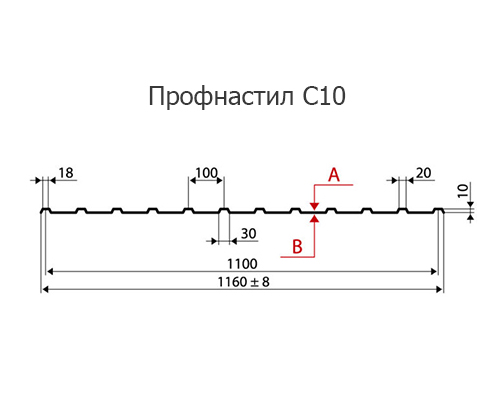 Производство профнастила С10 по индивидуальным размерам с нестандвртной шириной позволяет получить металлический профиль стенового типа с необходимым количеством ребер жесктости, что достигается благодаря продольной резке профнастила. Основа материала – высококачественная холоднокатаная сталь, прошедшая горячую оцинковку. Все марки профилированного металла оцинковываются с обеих сторон.