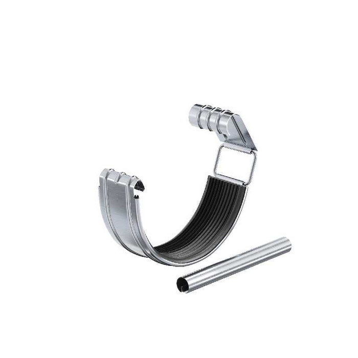 Соединитель желоба в комплекте предназначен для последовательного соединения двух желобов, либо желоба и угла (внешнего или внутреннего). Предотвращает протекание воды в местах соединений и является компенсатором линейного расширения металла. Имеет полноценный резиновый профиль, благодаря которому не требует мер по дополнительной герметизации. Наличие универсального замка (пряжки) позволяет использовать его многократно и исключает возможности его поломки при частом открытии или закрытии. Наличие ребра жесткости придает детали дополнительную прочность. Соединитель желоба поставляется в комплекте с элементом жесткости, который представляет собой трубку из оцинкованной стали, либо из меди, толщиной 0,7 мм, которая по своей конструкции повторяет завиток желоба.С помощью элемента жесткости на 50% увеличивается жесткость конструкции в местах соединения желобов, что упрощает работу по расчету и установке водосточной системы.