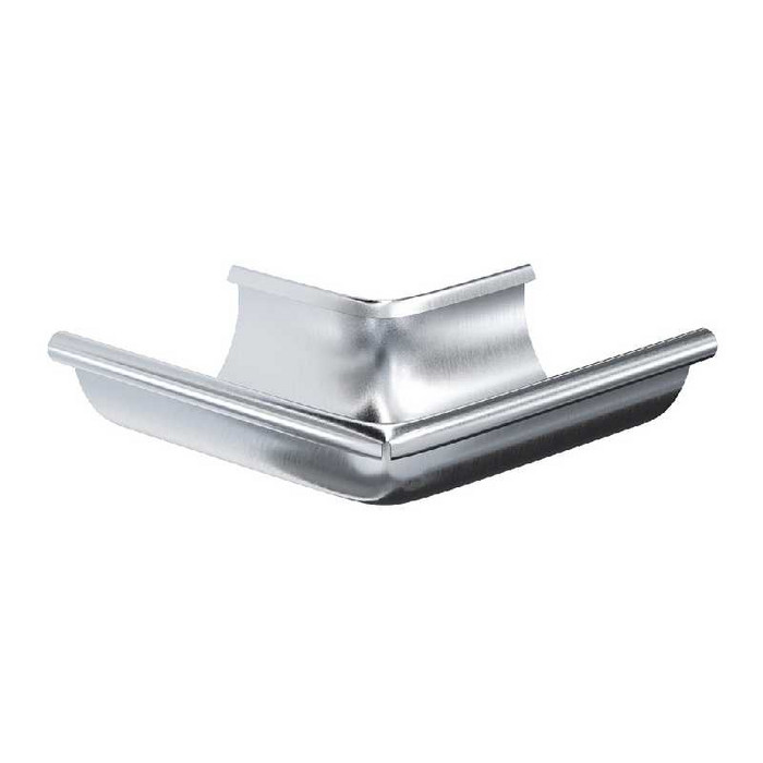 Угол желоба наружный 90° устанавливается на внешних углах кровли и предназначен для изменения направления движения воды. Угол выполнен по уникальной технологии без сварного шва (цельнометаллический).