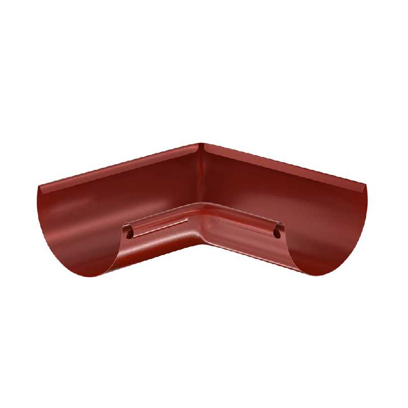 Угол желоба внутренний 90° устанавливается на внутренних углах кровли и предназначен для изменения направления движения воды. Угол выполнен по уникальной технологии без сварного шва (цельнометаллический).