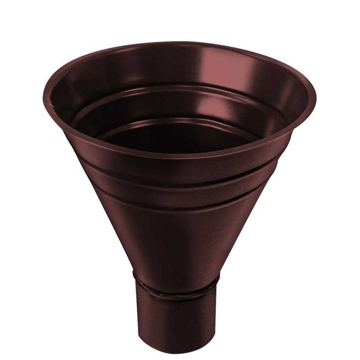Воронка водосборная предназначена для сбора воды в том случае, когда сток не организован посредством желоба, а осуществляется по ендовам (сложные формы крыш).