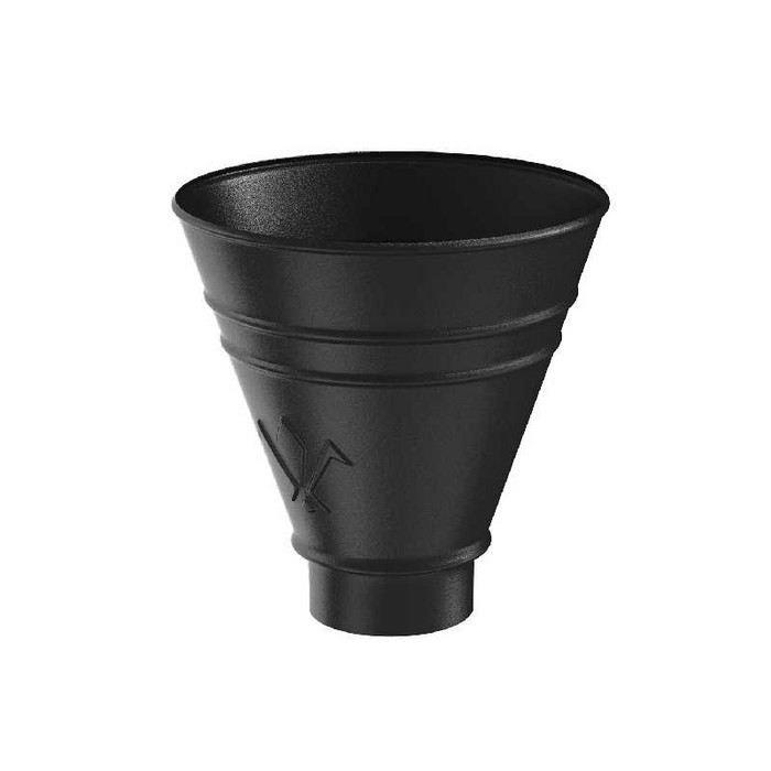 Воронка водосборная круглая предназначена для одиночной установки в местах без использования желобов (разжелобовка), в ендовах, т.е. в тех местах кровли, где необходим сбор большого количества воды.