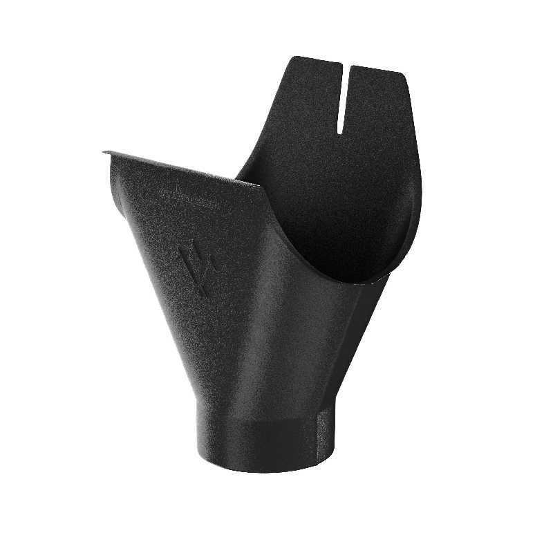 Воронка желоба устанавливается на водосточном желобе и является устройством, передающим поступающую из желоба воду в водосточную трубу. Не требует дополнительных мер по герметизации. Надежность воронки желоба обеспечивается наличием усиленного ребра жесткости в передней части.