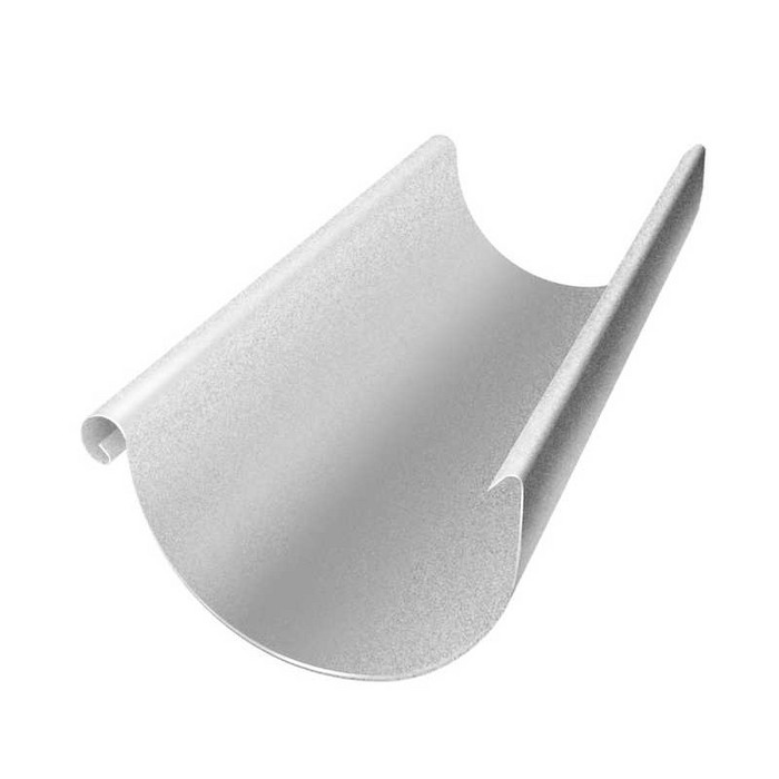 Желоб полукруглый предназначен для сбора дождевой воды с кровли. Желоб фиксируется на крюках, установленных с промежутком 600-900мм и обеспечивающих уклон 5 , мм на погонный метр.